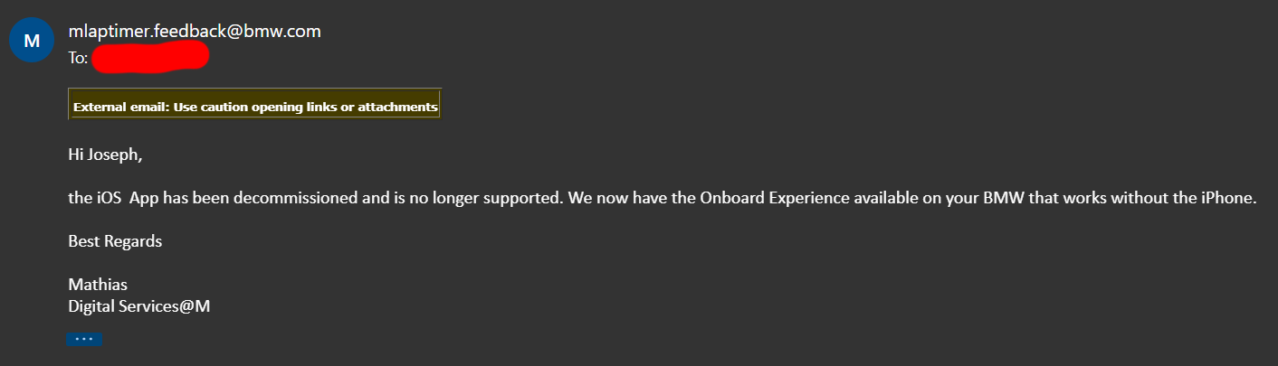 why not just leave it be then??? ok, i can understand no new features, but new features would be awesome... why not just leave it as it is and let us use it? and why even leave it in the car stripped down like this? to say its still a feature? and not get a class action lawsuit over the $900 USD M Drive Professional, which still says on bmwusa.com configurator that the iOS App and Laptimer are included... LOL |
